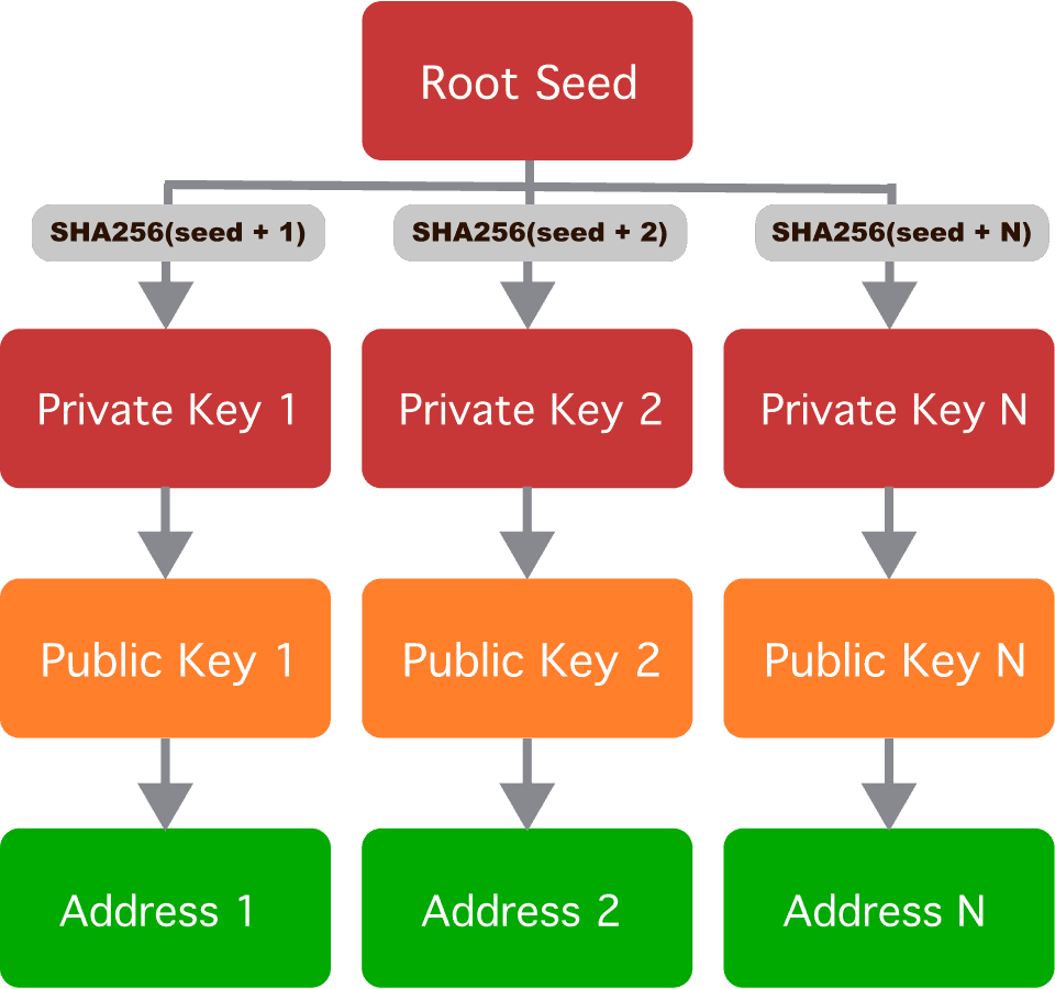 Deterministic wallets are providing a consistent, replicable way of creating child keys starting from a root seed.